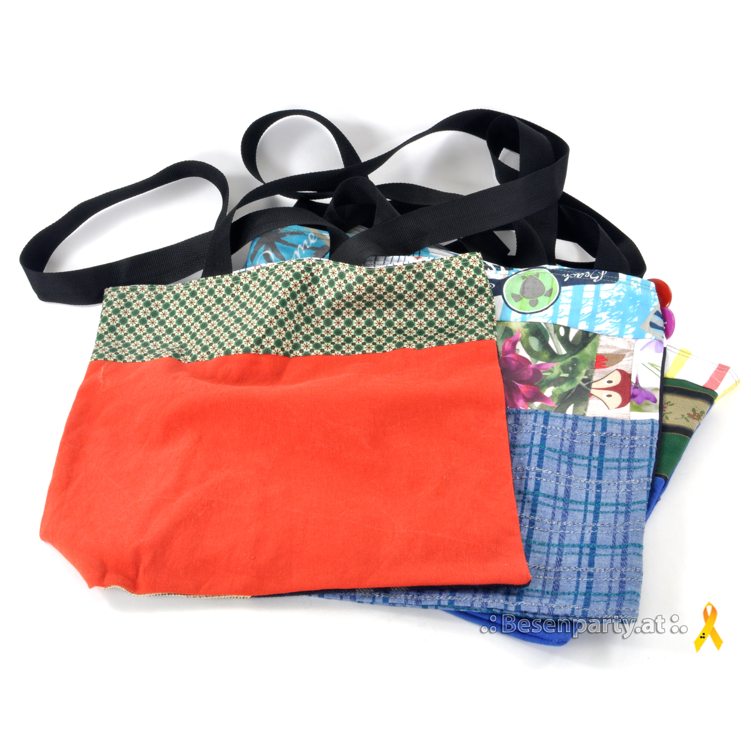 Geschenktasche mit Henkel, Patchwork mit Dekorstoffen, gefüttert.